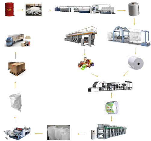 Quy trình sản xuất mành PP (polypropylene) từ sợi cuộn nhựa qua máy dệt bao gồm các bước cơ bản sau